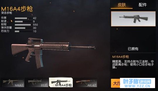 M16A4步枪这把枪的伤害为42,射程为550米,后座力为10,在步枪系类里与M4A1有点相似,伤害还比M4A1高。在步枪系列里还算中规中矩的,不算太出色,但也不会太LOW。
