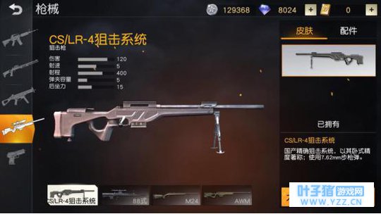 这把枪的外型是不是有点像mini版的AWM?不光长得像,伤害值也可以和AWM相媲美了,一举成为狙击枪界的老二,仅次于AWM。不仅如此,CS/LR-4狙击枪前面的支架还可以在我们卧倒时显著的提高射击精度。