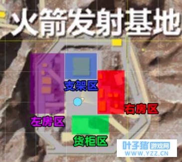 首先,我们来看一下火箭发射基地的俯视图,基本上分为四个区域分别是左房区、右房区、货柜区、支架区。