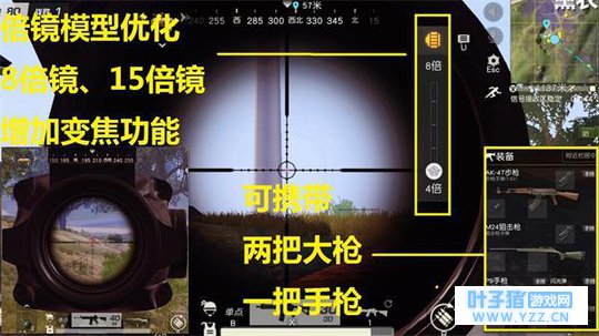 贴心小改动以上均为大型的更新,还有一些小的细节方面,进行了改动优化。首先是背包与武器栏新增手枪的专用位置,玩家可以携带两把大枪与一把手枪进行战斗,虽然说现在作战手枪还是处于次要地位,相信不久的将来也会有更多类型的手枪加入,还是值得期待的。其次是8倍镜、15倍镜增加变焦功能,变焦可手动调节,更方便的瞄准中远距离的目标,这次15倍镜的江湖地位一定会有大幅度的提升。最后,游戏内瞄准镜的模型、机瞄体验、跳伞进度条都进行了更新优化,使视觉效果更上升了一个档次。 相信很多看完文章的小伙伴都已经迫不及待啦,新版本移动端预计在19日左右会跟大家见面。游戏里太多的乐趣,太多的惊艳都等待着我们去开发体验。版本更新后不仅会有酷炫的时装和枪械皮肤推出,更有大量永久福利发放,还等什么呢?喊上小伙伴们来一次全新的体验吧(附M27冰山美人图一张仅供欣赏)。