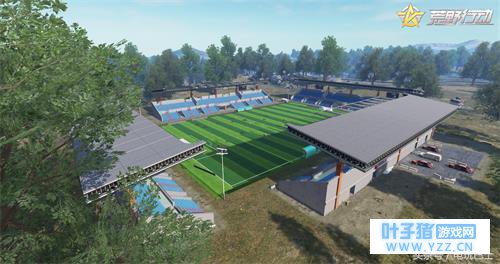 足球场这个地方可有意思了,虽然四周都有观众席作为掩体,但是中间的场地空旷无比,附近大多数为平原丘陵,整体环境宽阔。实战中站在高处可轻松查探他人的行踪,因此如果在这儿落地有了高倍镜简直不要太舒服,再来一把狙击枪,你就是天选之人!这儿就是狙神的天堂,小编有一次在这儿落地后捡到了高倍镜和毛瑟枪,一枪一个嘤嘤怪,美滋滋~