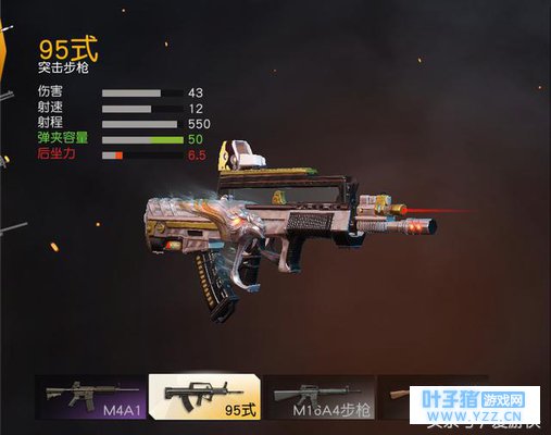 95式轻机枪属于冲锋枪类型,所以荒友们别弄错概念咯!射程仅为280(步枪为550),射程为步枪一半。可以装备全系列的倍镜,通用性还是挺强,在中近距离输出不俗,与95式突击步枪比较: 伤害:43 射速:12 射程:550 最大弹夹容量:65 最小后坐力:6.5