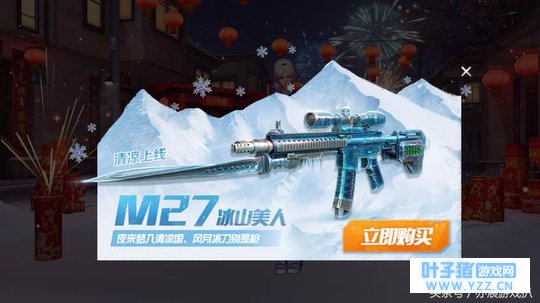 来自M27步枪的新皮肤:冰山美人;听到这个名字,就觉得像是有一位来自寒冰之地的美女迎面而来!真的有一股清凉的感觉!哎呀,扯远了,其实就是一个枪械的皮肤罢了。
