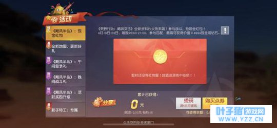 更新游戏还会收到大礼哦,更新游戏到最新版本,即可领取易容卡、高级枪械礼包等奖励!4月19日-23日每晚20点-21点,参与任意匹配模式的战斗,有机会在游戏内拾取到现金红包!最高可免费赢取4999元!快来游戏中体验吧!