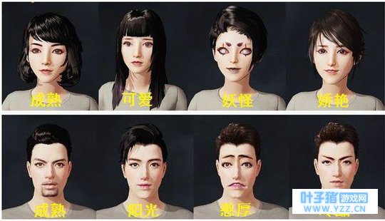 发型是玩家对于角色总体风格的选择。发型目前男女各有四种,选择自己喜欢的风格即可,或根据模板尽可能选择与模板风格相近的发型。 脸部决定了整体的脸型及轮廓。在这里玩家可以通过位移图调整为瓜子脸、大饼脸、方形脸、圆形脸等等,但一定要注意通过移动人物观察脸部侧面,防止出现侧面凹凸不平的情况。