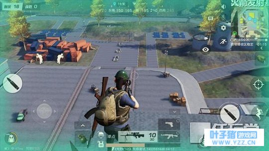 火箭发射基地,位于新地图东南方向,是个地形和视野都非常开阔的场所。虽然地处平原,但由于发射火箭的基座建得非常高,让占据了制高点的玩家可以拥有极大的“狩猎”优势。火箭基座的登顶路线设计得比较复杂,在远处和地面很难对高处进行打击,相比之下地面所拥有的掩体只是一些不是很高的集装箱,而且比较分散,这就让发射基座拥有了难以攻克和以上克下的优势。