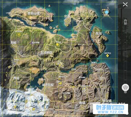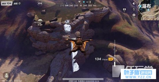 甜水瀑布,位于地图东南山脉地带,山高水清,除了山顶上游有少数房屋外这里便少有物资,瀑布地带也不利于玩家通行。于是这里就成了一个鲜有人烟的世外桃源,若隐身于水帘洞中,苟活到决赛圈不是梦。