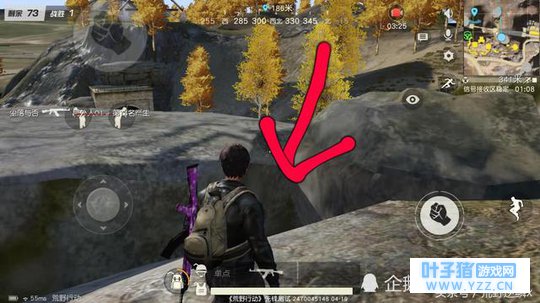 我们来到这个石头这里,只有这里才能卡到石头里面去,我们靠近那个石头缝之后,要一直往前拖动让人物跑起来,这个时候我们就要一直按跳跃键,左手移动不要放开,右手跳跃键一下一下的按,这里就可以卡进去了,不过我们靠近的时候要先把人物视角往下拉,再按照上面的方法就可以了。