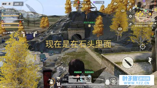我们现在已经是成功的卡到石头里面去了,我们在里面可以看到的视野还是挺广阔的,而且火车轨道上有人经过的话完全可以在这里出其不意的打他,我们也可以转到后面打击在信号塔上面的人,在这里完全不用担心被别人打到,是不是很好玩呢?不知道大家有没有学会呢,学会的给我点个赞吧!如果不知道怎么卡的话,逆鳞可以出视频教学哦!