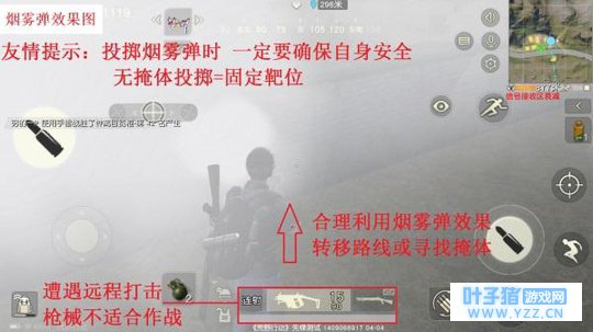 烟雾弹可能是游戏中往往被忽略的一种投掷物,很多时候烟雾弹的实用效果会比三级防具来的更为实在,特别在面对敌方远程射击,会让对手丧失攻击欲望。 它虽然没有威力,却有着更大的用处,实属一种战略性武器,建议每个小伙伴随身携带一颗,以备不时之需。