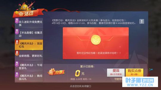 4月19号到23号的每晚20点到21点,参与匹配都有机会在游戏中的各种资源点捡到金灿灿的大红包!不过里面多少钱就完全看运气了,如果各位荒友有谁拿到了4999一定要告诉小编!本编要吸欧气!!!
