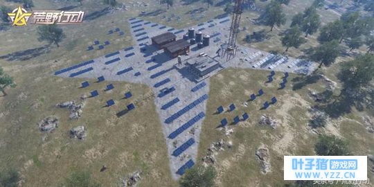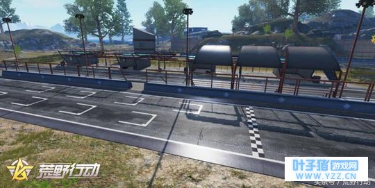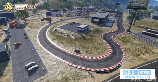 太阳能电场的风景同样优美,开阔、平坦的地面上,散落着许多的太阳电池板。相信细心的荒野精英已经发现,从高空望去,可以看见太阳能电池板拼合成一个《荒野行动》的LOGO! 赛车场