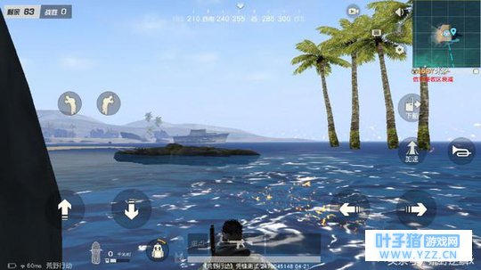 在把船开进去之后,我们可以切换座位,这个时候我们就可以在船上面进行攻击了,而且把视角往上挪的话,我们是可以清楚看见小岛上是东西的,如果有人按照刚才那个方法在小岛上面卡石头bug的话,我们就可以从下面进行偷袭!