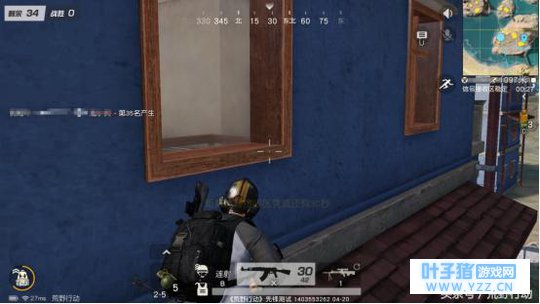 如果敌人已经进楼,然后从阳台跳到侧面的二楼屋檐上!这里我们可以通过窗户观察到敌人的动向!