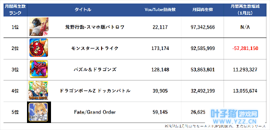 《荒野行动》在直播平台的播放量表现,也同样能够说明日本玩家对其认可度很高。根据Youtube数据监测公司BUZZCAST2018年2月的数据显示,《荒野行动》虽然视频数量只有2.2万,但它的月播放次数却超过了日本iOS畅销榜第一的《怪物弹珠》,跃居首位。