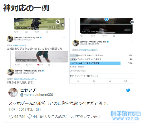 日本玩家的评价:氪金改变的只有外观。 目前日本手游市场中很多游戏都追求重氪金,付费点较少的游戏很容易获得玩家的关注。考虑到之前《舰队收藏》曾因付费点较少而被日本玩家夸为“良心”,这也就成了《荒野行动》获取日本玩家支持的一个原因。 其二,对玩家的迅速反馈。针对玩家遇到的问题,《荒野行动》日服运营团队会在游戏内客服渠道、游戏客服邮箱第一时间回复,并留意官方推特收集玩家反馈的问题。玩家制作的UGC,因此被玩家誉为“神运营”。甚至有玩家表示要让日本的手游运营来学学它。