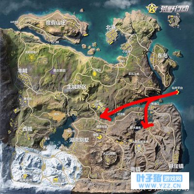 (因微信图片大小限制,该图不代表原画质) 水域范围广阔,周围的资源点也比较多 ,北港、湖湾别墅等一些资源较为丰富的地点,散落在水域附近。 水域附近还散落有许多小的资源点 ,选择水域打野的你们,一点也不输跳其他资源点的玩家,你们也可以很“肥” 3条路线,灵活选择 蜿蜒曲折,伏击必选