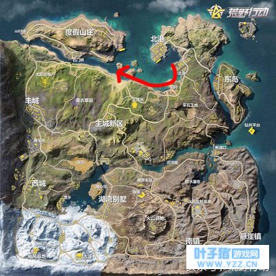还有一处物资较为丰富的地方就是小北港至泊村一带的路线。 这条路线毗邻北港、足球场等人多、资源多的地点, 选择这条路线的精英们能避开人员较为密集的地点,在周围进行搜集物资 。