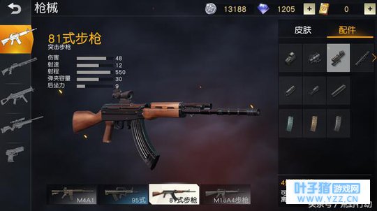 81式步枪也是使用7.62mm口径子弹,拥有与AK-47相同的48点高额伤害值,还拥有最快的步枪射速,高达12点!而且,它的裸枪后坐力也是步枪中最低的!
