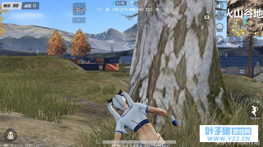 但是我们也得注意,其实还有一个盲点,那就是那篇树林,如果是资深玩家,一定会选择从树林转移。但也不用怕,这些树干粗壮,也成了我们完美的掩体,这里也是坐收快递的好地方。