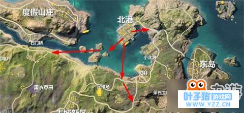 [闽南网] 在荒野行动里,随着新地图的推出,大量的新元素和玩家见面,其中颇为知名的就是春夏秋冬式的环境布局。暂且不提其他,今天我们来看看位于春日系列地图中的北港的打法,希望大家喜欢。 环境简析 北港,位于地图的北部,存有大量的房屋,蕴含无数的高级物资,可满足多支队伍的发育需求,是一个战略极为险要的位置。实战中,由于三面环海、仅有北部和半岛相连,十分适合于战士的阴人和搜点。同时,由于附近存有相当的水上载具和陆地公路,因此小伙伴完全不用担心后期跑图的问题。注意,北港对面为小北港、柏村、足球场,因而后期的撤离较为方便。