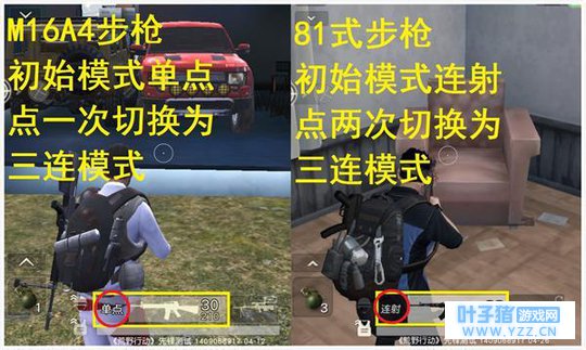 8、目前版本中只有M16A4和81式步枪具有三连发功能,这里需要注意的一点是:M16A4任何情况下拾取后的初始模式都是单点,需要手动点击一次切换为三连模式;81式突击步枪初始模式为连射,需要点击两次切换为三连模式。喜欢使用三连模式的小伙伴要养成随手切换模式的习惯,否则单点对枪就尴尬了。