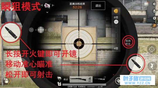 3、瞬狙模式,在使用单发型狙击枪的时候,不需要按下开镜按钮,直接按紧开火键(PC端鼠标左键),并不要松手,即可开启瞄准镜。同时移动准心瞄准,松开开火键即可射击。这一模式会使操作更加顺畅,非常实用,需要在设置中开启。此模式只适用于单发型狙击枪,包括毛瑟、M24、CS、AWM。