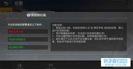 13、目前PC版本已经推出实名制匹配,这种机制的出现能够有效遏制涉嫌使用外挂等作弊行为,为遵守公平游戏规则的玩家提供更好的游戏体验,可以在设置中手动开启或关闭。移动端也会在后续更新中开放这一功能,让人人喊打的作弊行为无处可逃!