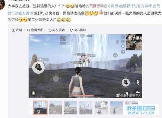 【最爱闺蜜合照族】 最后就不得不提妹子们聚会必做事情——自拍!现在在一个小咖啡馆自拍已经不流行了,要排就要在水帘洞里拍照!你没有听错,荒野行动中有一个经常被人忽略的场景——甜水瀑布,位于地图东部偏南一点点的位置,由于资源不是特别丰富,所以落地飞去的玩家不是特别多,但是这里是个拍照的好地方,你看这位玩家,三人合照配上流淌的瀑布水,是不是有种结义的感觉!