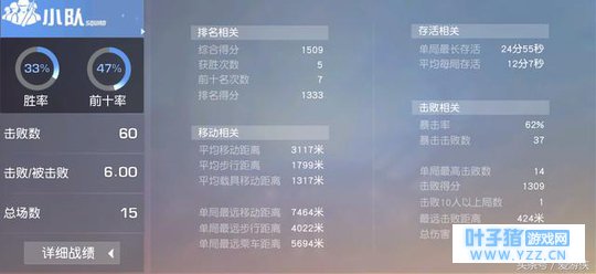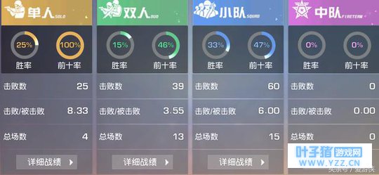单人4局,击杀25,KDA8.33,小队模式15局,KDA6.00。对此小编觉得数据上问题不大,毕竟也有大神玩家,或者《荒野行动》人机刷得比较多。