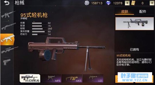 该步枪口径5.8mm,稳定性好;精确度高,后坐力极小,满配后坐力低到了6.5,在最近的更新加入了新的配件"扩容弹鼓"之后可以将容量扩大到50发。属于稳定耐用、新手适用的入门武器。而且伤害力也是不容轻视。 二.95式轻机枪