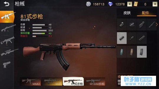 三.81式步枪 81式步枪是继AK后的有一把步枪里的王者,和AK一样,单发伤害达到了48,但是在射速和后坐力方面远远的优于AK,完裸枪数据,81式突击步枪的优势已经很明显了,最高伤害、最高射速、最低后坐力。这三项数据是没有任何一把步枪能与之匹敌的,而且它最大的亮点就是支持连射、单点和三连射三种射击模式,配件方面81式步枪需求较小,可搭配任意瞄准镜、步枪枪口、弹夹等配件,不必浪费太多时间搜集配件,在没有配件的情况下依旧表现出色。唯一一点需求就是7.62mm子弹,子弹稍重需要足够的背包空间。