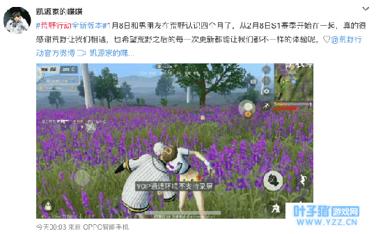 荒野里看太多了大房子,梦里都会遇见!荒野行动还是一个造梦工厂嘛~不过小编也觉得游戏里的各种小房子实在是太好看啦~小房子不重要,请给我一片薰衣草田~ 下面这条微博真的让人感动,有人在《荒野行动》里奔现啦!与恋人在游戏里相识相恋,随着游戏更新,两个人的感情也不断升温,太浪漫了吧!小姐姐,你的男朋友是网易给发的嘛?