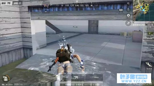 上楼梯之后还能正常行走,由于这个点位只能游泳过来,如果对方没有水陆两栖武器,是根本无法靠近,你用手枪都能守住!