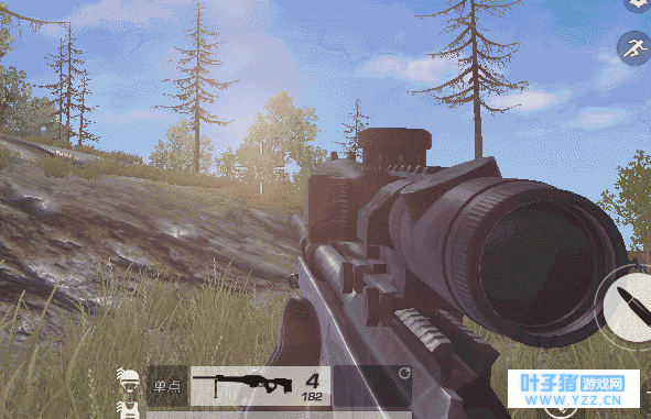 有子弹下坠 从上面这两张动图中可以很清晰地看到,在引入子弹下坠机制之后,弹道更加符合实际物理情形,同时也需要玩家进行提前量的估算。 双瞄具枪械亮相!与此同时,双瞄具枪械也将首次登陆荒野大陆!它的操作模式又有何不同?敬请期待吧