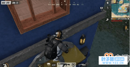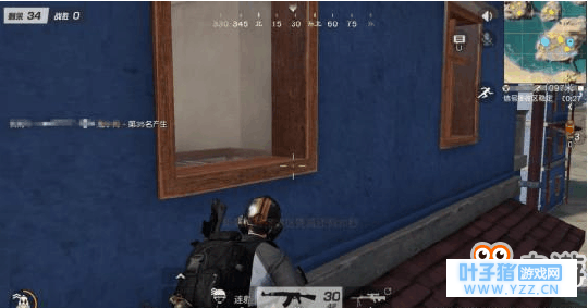 如果敌人已经进楼,然后从阳台跳到侧面的二楼屋檐上!这里我们可以通过窗户观察到敌人的动向!