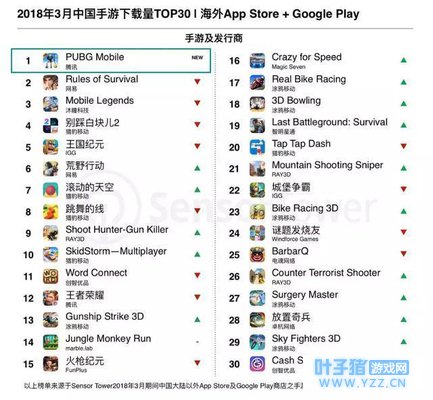 3月出海手游TOP30:荒野行动收入第二,PUBG Mobile登顶下载榜!