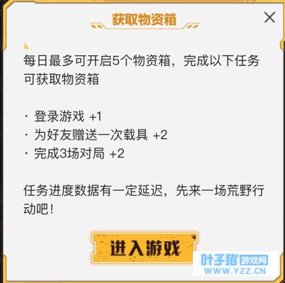 我们每天最多可以开5个箱子,可赠送好友5次,接受好友赠送2次,“物资箱”的具体获取方法如下——