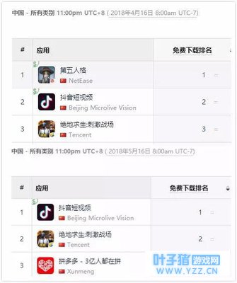 数据来源:艾瑞咨询 对了,别忘了网易还有《第五人格》。 这款4月2日上线的逃生类竞技手游,承载着网易挑战《王者荣耀》和《刺激战场》地位的野心,游戏首发当日中国App Store免费榜第一,这是抖音已经连续霸占17 天的位置。 到了04月28日,《第五人格》累计注册用户突破5000万,被当做拉升网易第二季度和全年业绩的希望。 但仿佛像是投石入水,激起一阵水花,然后就没有然后了。根据App Annie数据,《第五人格》目前虽依旧保持着一定热度,但近一周的中国区iOS热门游戏排行榜上,《第五人格》始终没能在《刺激战场》下翻身,在总榜上更是从第一名掉到了三十名左右。