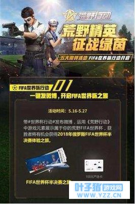 这个夏天球迷们期待已久的21届世界杯就将如火如荼的在俄罗斯展开,各位荒友们是不是也有心动呢?比起在家里看球赛,小编更希望能和其他球迷们在现场为自己喜欢的球队呐喊助威,一起挥洒汗水。而现在,你也有机会一夜暴富,参加荒野行动五大限时活动,获得 2018年俄罗斯FIFA世界杯半决赛体验之旅 。