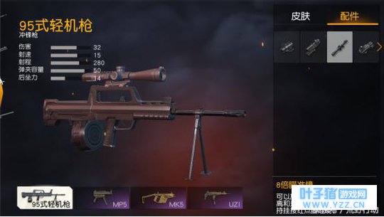 95式轻机枪搭配上高倍镜后,空投枪械的优势被无限放大!试想一下,远处的敌人,一直处于移动的状态,拿着狙击枪的我们想要一枪命中,难度颇高!但是如果用95式轻机枪,那就不一样了!打开高倍镜,直接对着远处敌人进行无差别式火力覆盖! TOP 2 UZI