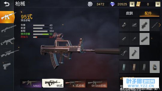 S-ACR步枪与M4A1步枪地位同等,也是《荒野行动》里“元老”之一,并且好像比M4A1步枪还要受欢迎一些,加上配件后,后座力要比M4A1要小一点;射速比M4A1要差1点,我觉得还会有很多小伙伴会选择使用S-ACR步枪的。 95式-突击步枪
