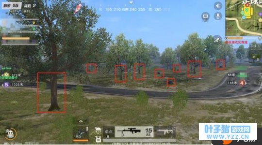 首先在搜寻敌人时,我们必须要注意的是,我们可以扫视,但是不能无目的性地扫视! 我们需要忽略掉一些次要信息,专注寻找一些主要区域,比如在野外,我们需要注意的,首先是这些树的后方,会不会有敌人;还有石头,石头也是敌人特别好的掩体。 不过小伙伴们需要注意:在寻找敌人位置的时候,注意为自己也找好掩体!