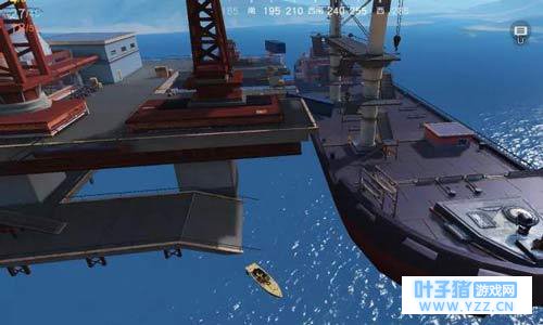 油轮的最低层是一个空旷的信息中心,没有太多适合隐藏作战的掩体;上到第二层,这里的物资比较富集了,可以很轻易地搜到各中资源;顺着楼梯再往上走,就来到了油轮的甲板上。油轮的上层建筑有一栋红色三层楼高的舰桥以及一个巨型龙门吊,龙门吊有一左一右两处楼梯,上面有不少资源。