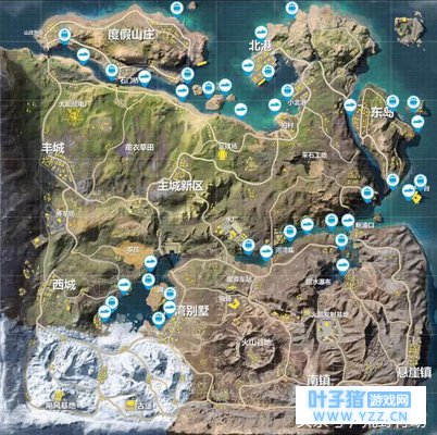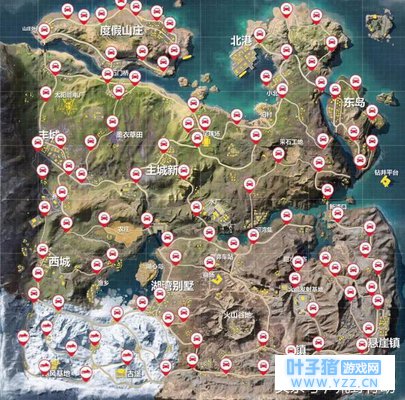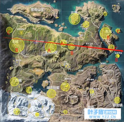 (因微信图片大小限制,该图不代表原画质) A类区域一般因为处于 地图中心 ,资源密集,人数众多,战斗也会激烈许多。包括足球场,商场,火箭发射基地,主城新区,古堡。适合 枪刚人猛 的荒友们前去征服,落地捡枪就开干! B类,航线上不错的选择, 避免了最激烈的核心位置 ,且有不错的地理位置。例如:北港,主城,西城,湖湾别墅,东岛。适合 稳于求胜 ,枪法和战术都有的荒友们,不怕刚枪的同时保证了之后的行动便捷性。 C类,因 地区偏远 ,中期不方便转移,但却 资源丰富 。例如:飓风基地,悬崖镇,钻井平台,部分野点。适合 擅长战术 ,对地图详细了解的荒友们,这些区域可以避免前期刚枪的不确定性,还保证了他们在遭遇战和决赛圈的强势性。 02 避免纷争,世外桃源 中级资源区