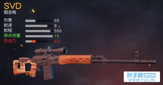 TOP 1 SVD狙击枪SVD狙击枪是荒野行动第一把连狙,登台之初吸引了很多玩家。由于之后88式狙击枪的出场,光芒被遮掩,但这并不能掩盖它的综合实力。