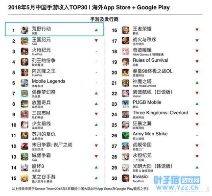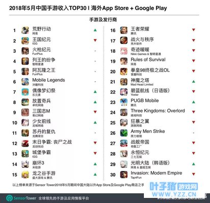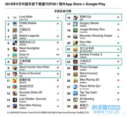 5月出海手游TOP30: 《荒野行动》登顶收入榜, 《Love Balls》拿下下载榜TOP1