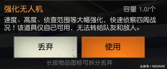 500点的耐久,超长的待机电量还有超远于其他无人机的侦察范围!据小版所测加强无人机它的侦察半径已经 超过500m啦 ,整个丰城内外都在监视范围内,超级强大!不过要注意的是该道具仅自己可用,是无法转给他人和敌人的!