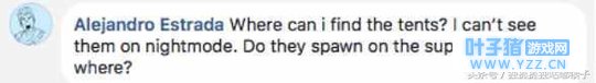一位玩家表示:我上哪找帐篷去?黑天找不到啊?再补给里面吗?看来这个小伙伴是黑夜模式玩上瘾了,黑天找不到?那么白的帐篷你竟然找不到?找不到还要跑到官博下面问一问?看来中毒不浅啊
