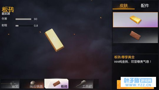 板砖,作为现实中最唾手可得的防身利器,在游戏中伤害达到了恐怖的90,比毛瑟还高出了18点,虽然射程比高压锅盖少了0.2但是仍无法改变它就是冷兵至尊的事实。